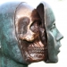 Bronzen Portret bekleed met houtschors op hardstenen sokkel. unicum